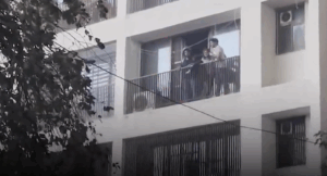 Video footage, published by India Today TV, shows people using bedsheets as makeshift ropes to climb down from balconies.