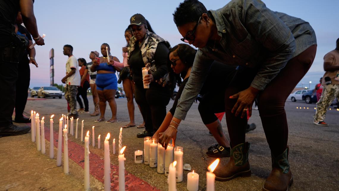 People light candles during a vigil for the victims of a mass shooting earlier that day, April 19, 2026, in Shreveport, La. (AP Photo/Gerald Herbert)
