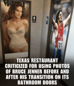 A small Texas restaurant has ignited a firestorm of controversy after installing bathroom doors adorned with before-and-after photos of Caitlyn Jenner, sparking accusations of transphobia that have drawn global outrage and reignited fierce debates on representation, inclusivity, and awareness in business spaces. The owners of Big Tex BBQ in Fort Worth, a family-run spot known for its brisket and “no-nonsense” vibe, defended the signs as “humor” meant to poke fun at “gender confusion” – but the move has backfired spectacularly, leading to boycott calls, death threats, and a swift reversal as social media remains split between those who see it as a harmless joke and others who decry it as outright discrimination. Either way, it’s a stark lesson in how a single branding choice can make or break a reputation overnight, turning a local eatery into an international pariah.