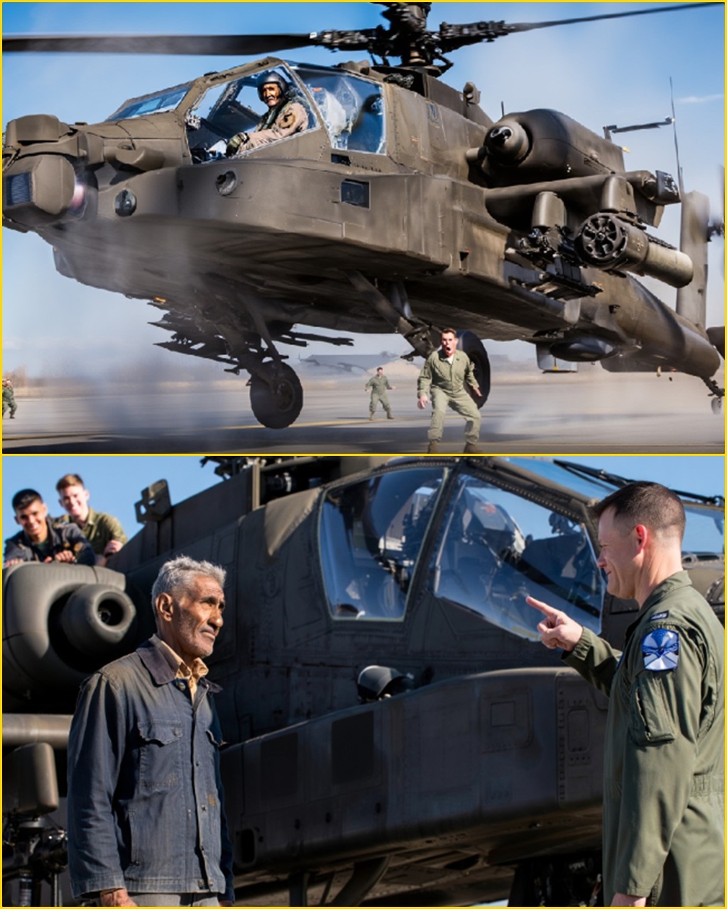 As Henry walked away, the Apache’s lights blinked once — almost like a nod.